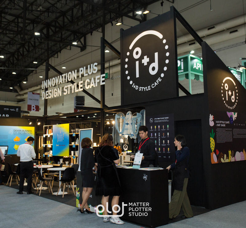 I+D STYLE CAFE หรือ Innovation Plus Design Style Cafe เป็นคาเฟ่ต้นแบบที่ผนึกเอา ดีไซน์ นวัตกรรม และแนวคิดเรื่องสิ่งแวดล้อมเอาไว้ด้วยกัน ภายใต้สถาบันส่งเสริมการออกแบบและนวัตกรรมเพื่อการค้า กรมส่งเสริมการค้าระหว่างประเทศ หรือ DITP ซึ่งในงาน THAIFEX นี้ ทางทีม Matter Plotter ได้ร่วมทำงานกับ คุณปราง เลิศทวีวิทย์ จาก Another New Design Studio ออกแบบนิทรรศการภายใต้แนวคิด “EAT EASE” ซึ่งนำเสนอการบอกเล่าเรื่องของวัตถุดิบไทย 18 อย่าง ที่ผู้เข้าร่วมชมสามารถใช้ประสาทสัมผัสทั้งการดมกลิ่น สัมผัส ฟังเสียง และชิมรสชาติ เพื่อสร้างการรับรู้เกี่ยวกับอาหารไทยในเชิงนวัตกรรม และแง่มุมต่าง ๆ ของวัตถุดิบไทยนอกเหนือจากความเชื่อถือเรื่องคุณภาพ จนสุดท้ายหลังชมนิทรรศการแล้วผู้เข้าชมได้ลิ้มรสรสชาติที่ประทับใจ ผ่านไอศกรีมแท่งรสชาติพิเศษโดยผู้เชี่ยวชาญด้านไอศกรีมอย่าง ‘ทองดี’